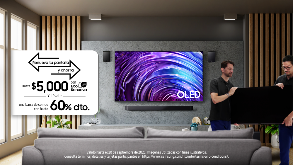 Con el objetivo de facilitar la actualización de equipos y fomentar prácticas responsables de renovación tecnológica, Samsung lanza en México su nueva campaña de EcoRenueva. A través de esta iniciativa, los usuarios pueden entregar su pantalla actual, ya sea Samsung o de cualquier otra marca, y así ahorrar hasta $5,000 pesos en la compra de una nueva pantalla OLED.