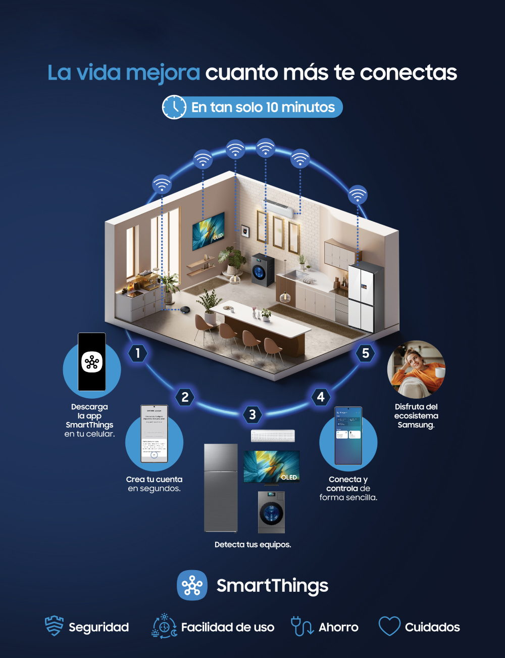 Para conocer más sobre SmartThings ingresa a https://www.samsung.com/mx/smartthings. Si ya estás listo para vivir estas experiencias conectadas, descarga la app en: https://www.smartthings.com/applink?action=app-launching