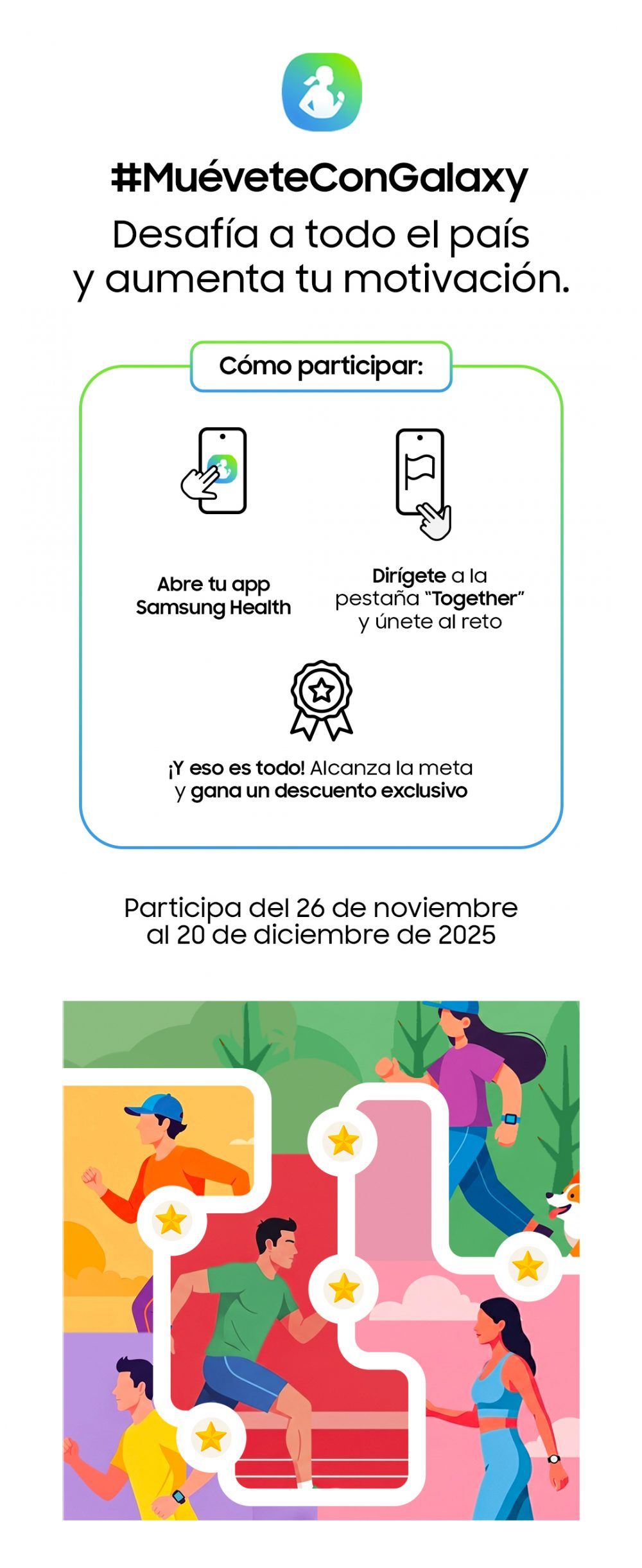 La participación es gratuita y se realiza dentro de la pestaña “Together” de la aplicación Samsung Health, con el hashtag #MuéveteConGalaxy. Al aceptar participar en el desafío, los pasos del usuario se contarán automáticamente en la aplicación mediante un