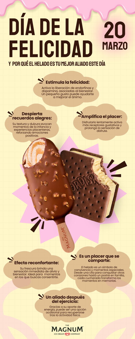 En un mundo donde los pequeños momentos de disfrute cobran cada vez más valor, The Magnum Ice Cream Company, la compañía de helados más grande de México y del mundo, se suma a la celebración del Día Internacional de la Felicidad recordando que este sentimiento también se saborea. Hoy, el helado se consolida como un detonador emocional: una pausa, un momento de conexión y una experiencia que los consumidores integran en distintos momentos de su día.