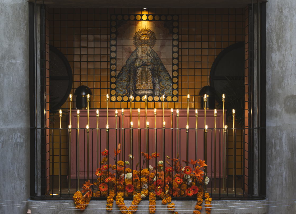 En el corazón del patio central, las velas encendidas marcarán el inicio de un recorrido sensorial, el olor de copal y flor de cempasúchil serán el aroma del espacio, mientras la luz tenue y los tonos cálidos crean una atmósfera que invita a la contemplación.